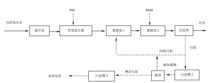 用新工藝,加入磁粉加速沉淀,節(jié)約污水處理時間,整合設備占地面積小,運營成本低